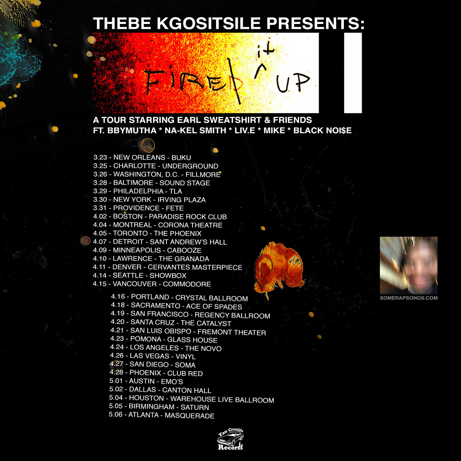 "Fire It Up!" 2019 Tour Poster and Merchandise. Earl Sweatshirt.